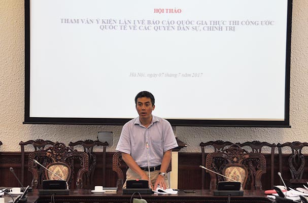 Thực hiện nhiệm vụ cơ quan đầu mối quốc gia thực thi Công ước ICCPR, từ tháng 7/2014, Bộ Tư pháp đã chủ trì, phối hợp với Bộ Ngoại giao và các bộ, ngành liên quan soạn thảo Báo cáo quốc gia Công ước ICCPR của Việt Nam. Dự thảo Báo cáo đã được Bộ Tư pháp tổ chức nhiều cuộc họp, tham vấn ý kiến của đại diện Bộ, ngành liên quan và các chuyên gia. Đồng thời, Bộ Tư pháp cũng đã tiến hành lấy ý kiến các Bộ, ngành liên quan đối với dự thảo Báo cáo.